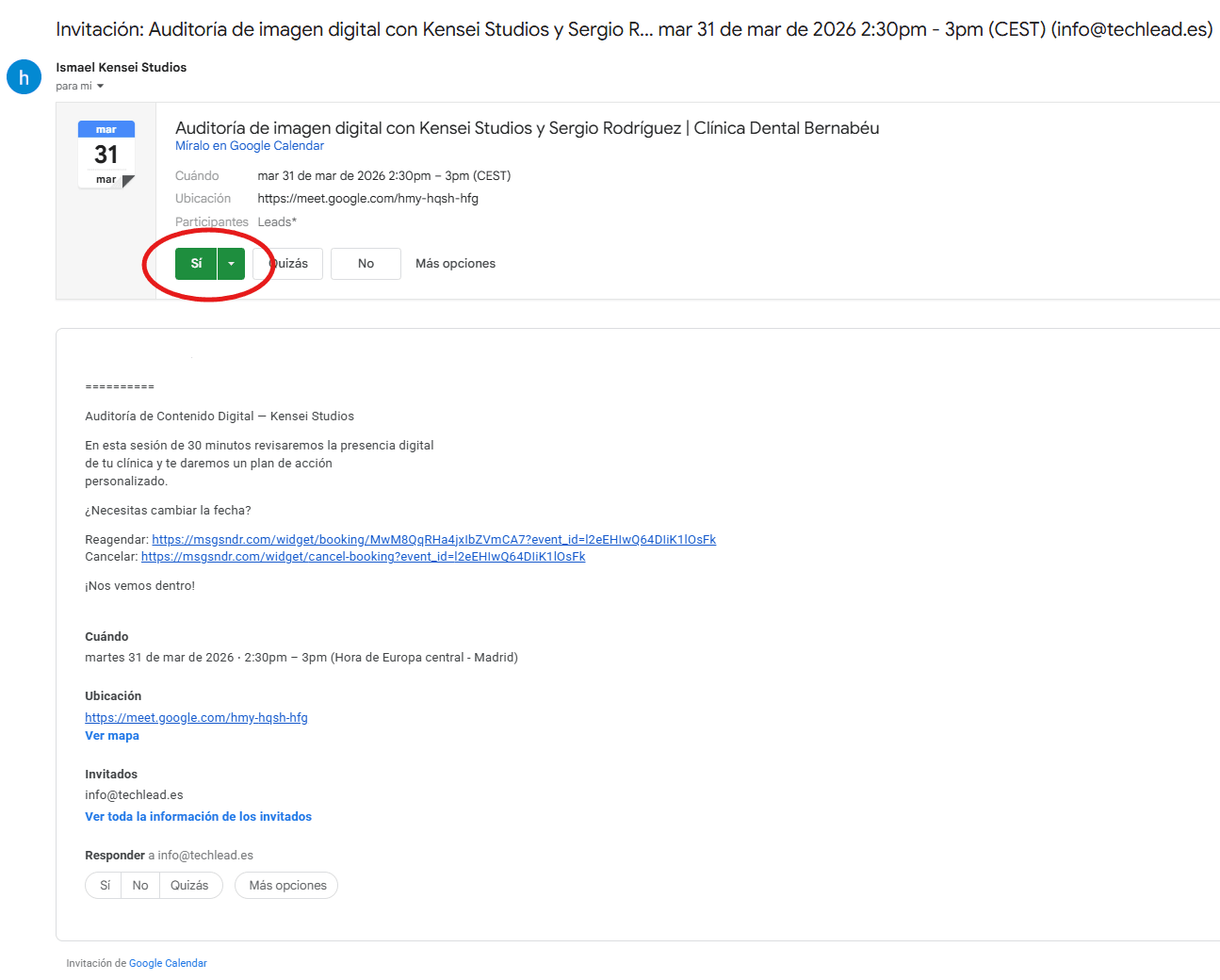 Abre el correo, haz clic en "Añadir al calendario" y marca "SÍ" en la invitación.